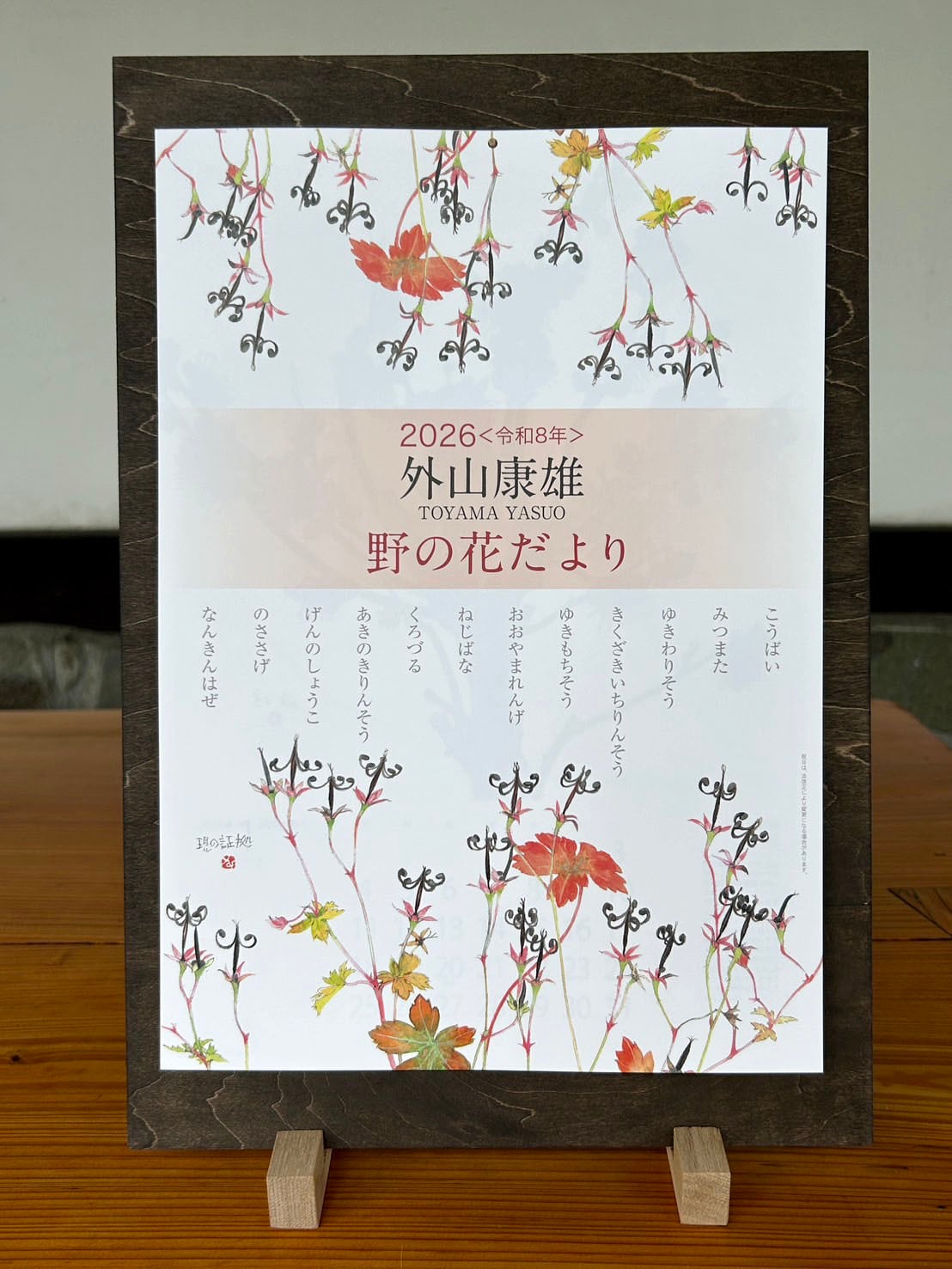 毎年好評のA4サイズの2026年度版「外山康雄 野の花だより」月めくりカレンダーです。
